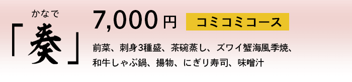 コミコミコースはお料理、飲み放題、消費税、全て込みの総額ですので幹事様も安心です!